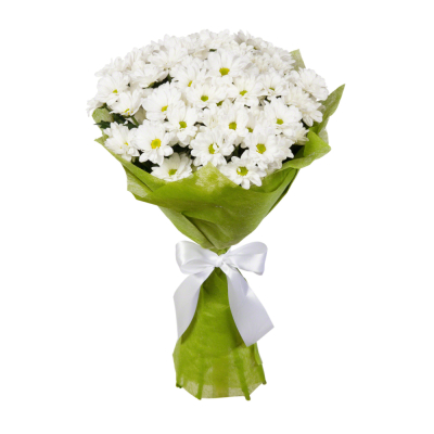 Роскошный букет из свежих хризантем в стильной фетровой упаковке — воплощение утонченного вкуса.