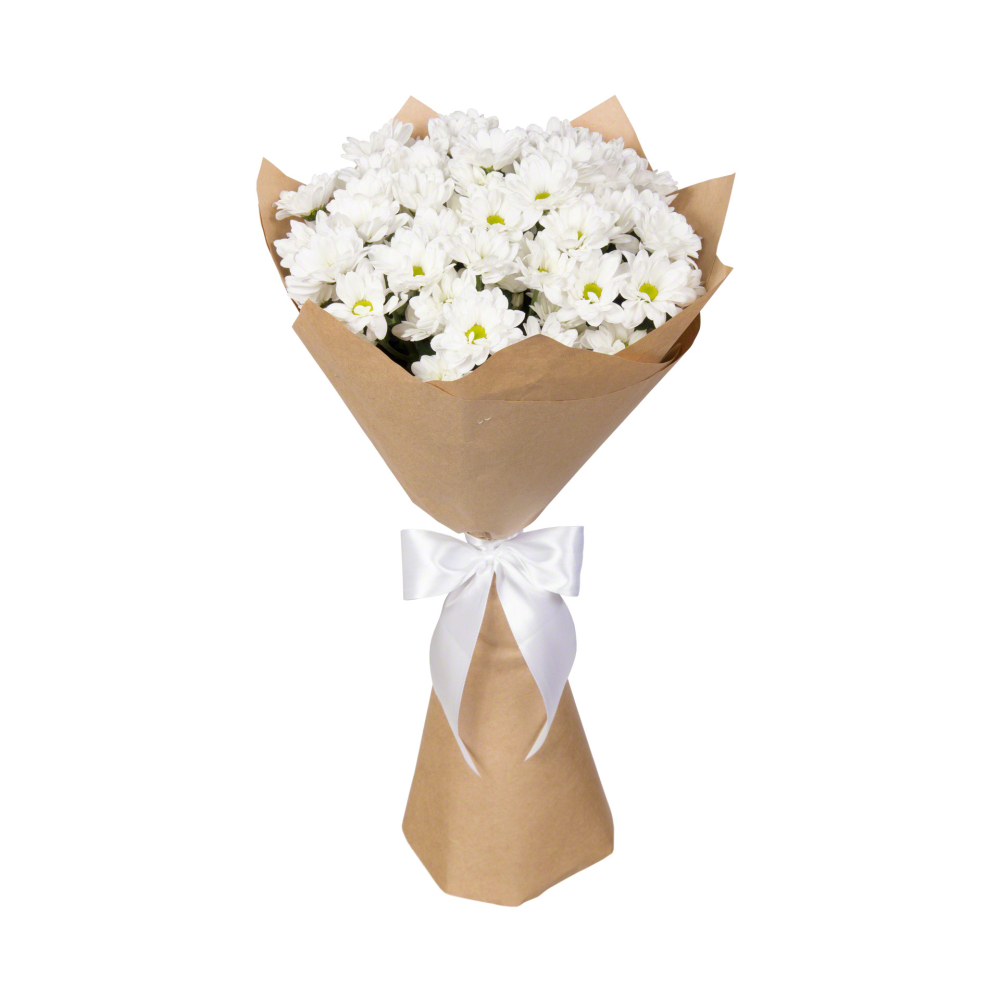 Пышный букет из 7 хризантем в крафт-бумаге – элегантность в каждом лепестке